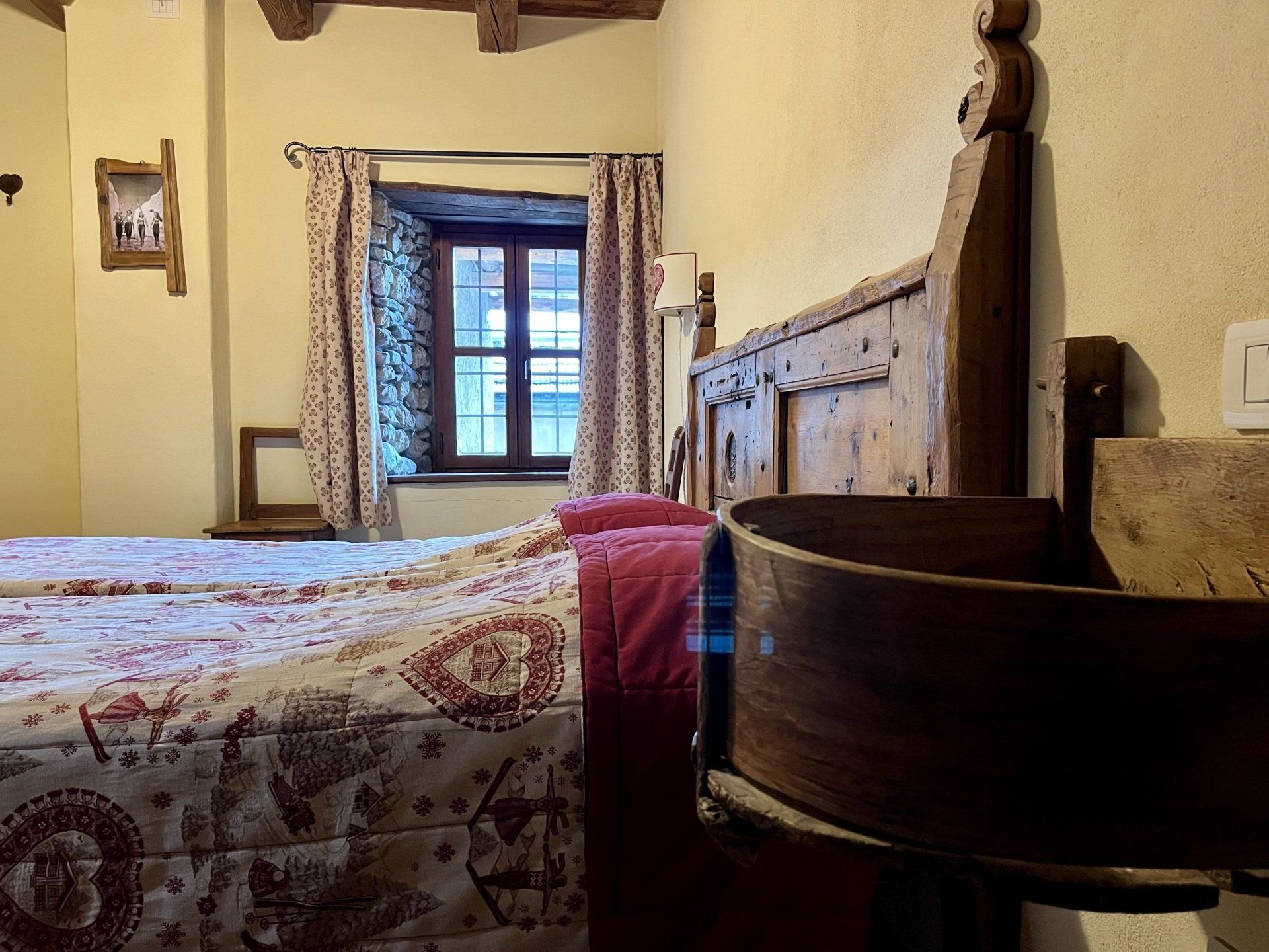 Our rooms are a place of certain refinement and simple at the same time. That’s how you will find the BarbaGust rooms. Ancient furniture style, but revised with modern eyes. Baths are located where at the beginning of the 20th century was the hay loft, where a lot of hay was stocked for winter. Now, after an accurate restyling, our rooms seem a warm refuge where spending relaxing pauses after a long skiing day, in winter. In summer, you can’t miss the beautiful cascades of flowers from the balcony.